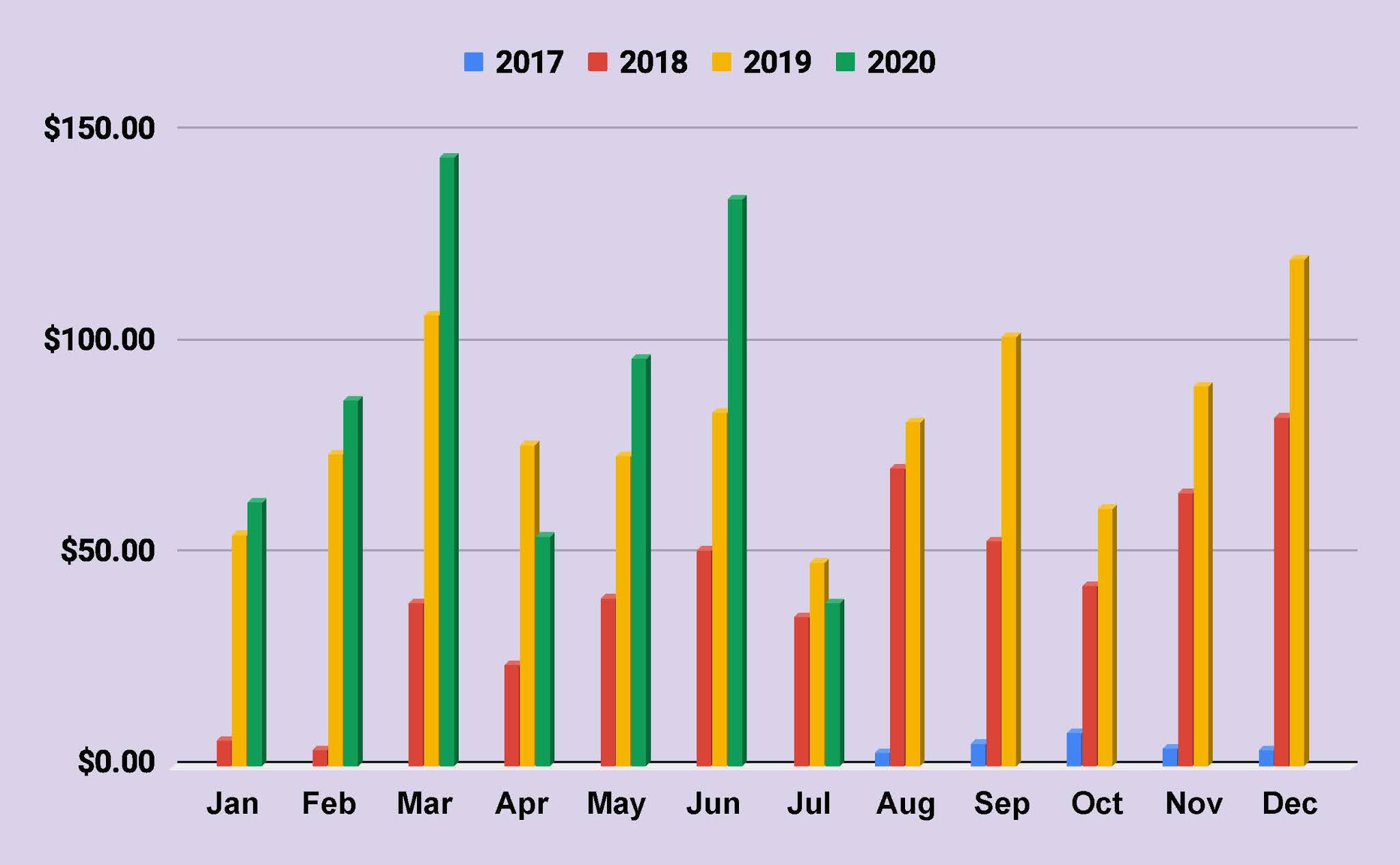Today I am going to show the status of my portfolio at the end of July 2020. Every month I am investing 10% of my salary. Out of that 10%, I invest 80% of it into dividend-paying stocks, 10% in non-dividend paying stocks, and 10% in Cryptos. I am not investing aggressively. This month I did not buy any stocks. I am saving cash. I am planning to buy my first house so maybe I will have to sell some of my holdings to pay for the downpayment. The following table shows my current portfolio distribution: