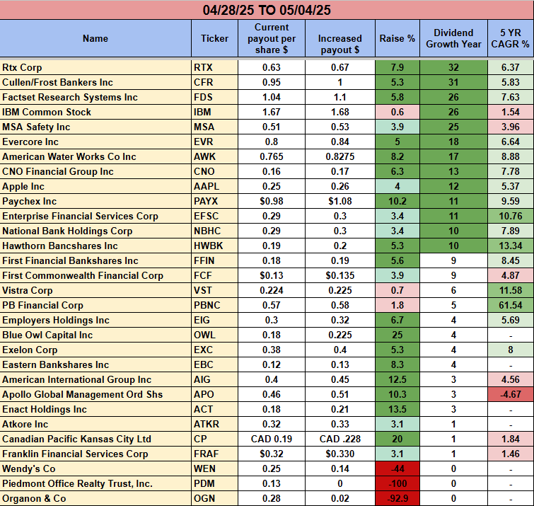 In June, 36 companies increased and 3 companies cut its dividends. The list of companies with their increase, growth year, and 5 years dividend CAGR is as follows